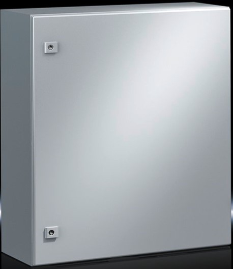 Armarios con puerta de chapa de acero, pintada con placa de montaje y entrada de cables en el suelo.